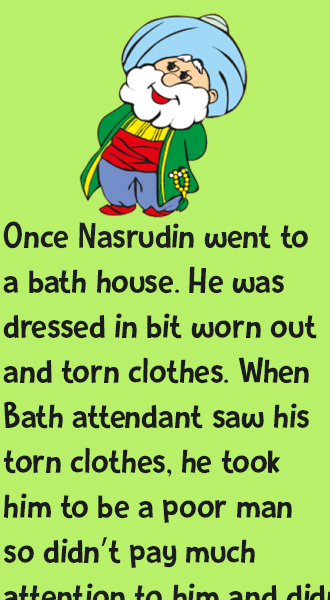 Once Nasrudin went to a bath house. He was dressed in bit worn out and torn clothes.
